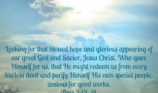 Titus 2:13-14: Looking for that blessed hope, and the glorious appearing of the great God and our Saviour Jesus Christ; who gave himself for us, that he might redeem us from all iniquity, and purify unto himself a peculiar people, zealous of good works. Lord, we thank you for the blessed hope that we have