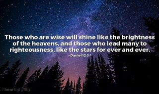 Daniel 12:3: And they that be wise shall shine as the brightness of the firmament; and they that turn many to righteousness as the stars for ever and ever. Thank you, Lord, for giving us wisdom that comes from you. Your light is in us, and we will become that light that shines in the