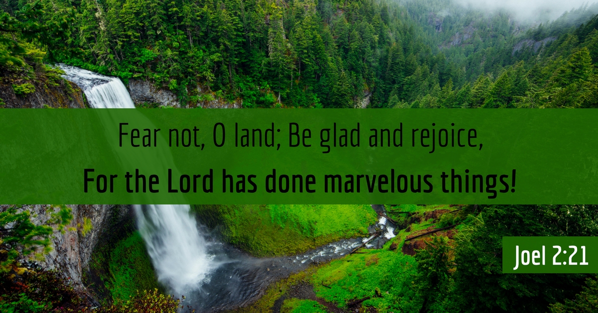 Joel 2:21: Fear not, O land; be glad and rejoice: for the LORD will do great things.